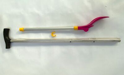 • la poignée du désenfile bas a été coupée pour pouvoir l'enfiler dans la canne.