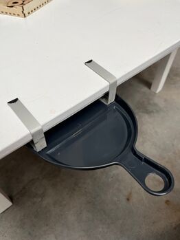 Accrocher une petite pelle à poussière sous une table pour permettre de ramasser les miettes ou de petits objets avec une seule main.