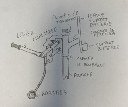 - Ajout d'un frein de direction qui permet d'éviter que la roue parte en tout sens quand on déboite le trotti